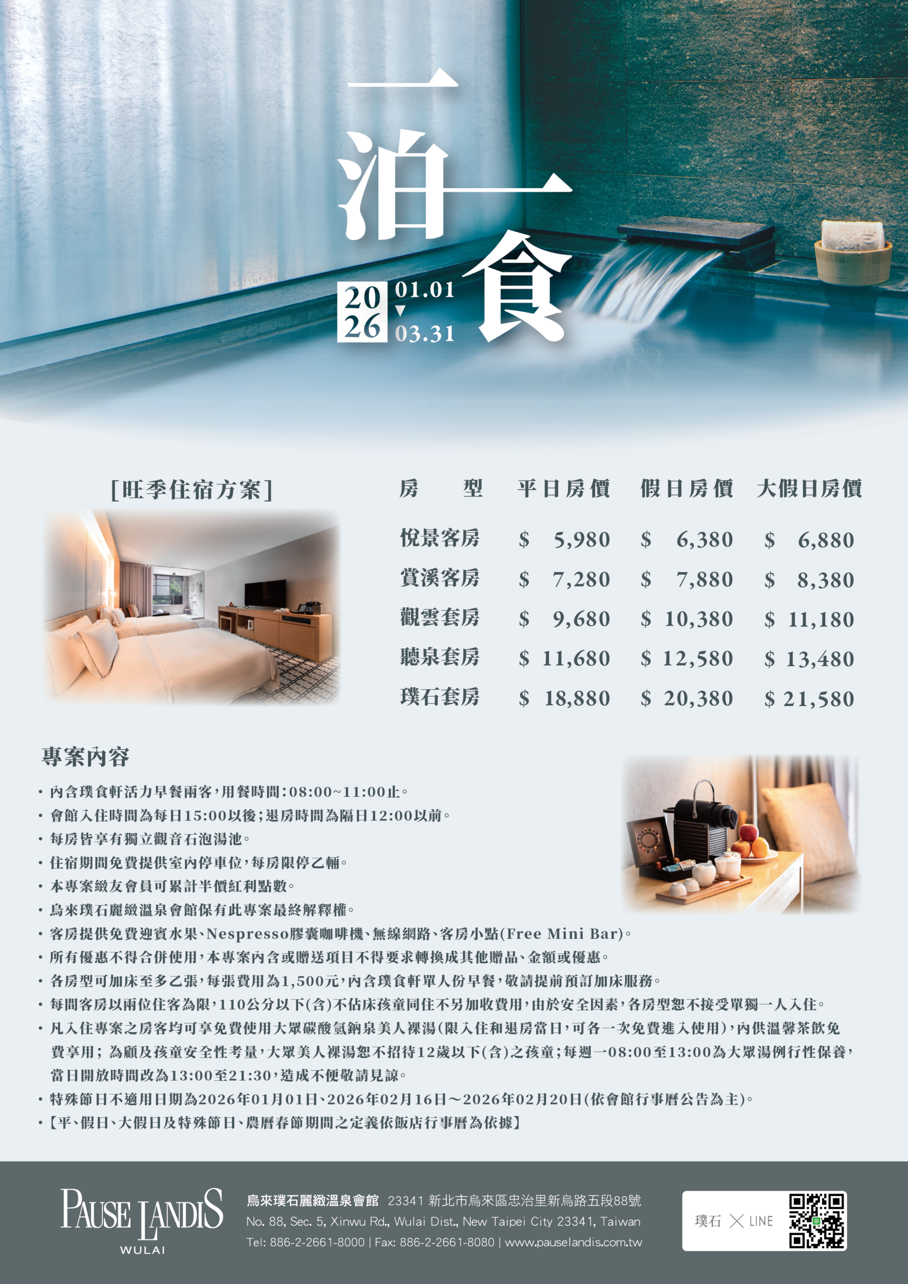 【住宿專案】旺季一泊一食2026-01-05/在: 住宿優惠, 最新消息 https://pauselandis.com.tw/wp-content/uploads/2026/01/公告精選圖片-9.jpg 1000 1500 supervisor01 /wp-content/uploads/2022/09/logo-new.png supervisor012026-01-05 12:58:172026-01-27 09:15:08【住宿專案】旺季一泊一食